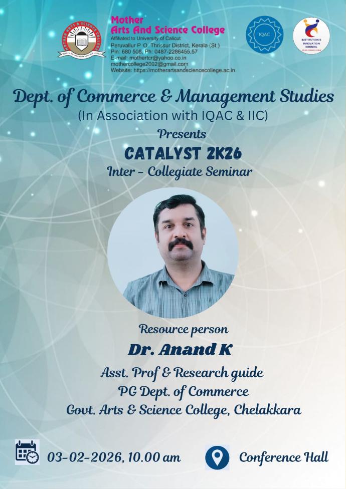 The Department of Commerce and Management Studies has been offering Undergraduate Courses like BBA Marketing, B.Com Finance, B.Com Computer Applications and Post Graduate Courses like M.Com Finance. The Department is also providing University prescribed Add-on Courses like Tally Accounting Package Certificate Courses for UG and PG students which help them in Accounting jobs. The Courses provided also enhances students with skills and knowledge in verbal and interpersonal communication, critical thinking, time management and problem solving skills. Besides curricular activities, the Department has been organizing various programmes like Commerce related Exhibitions, Business Quizzes, Debates, Seminars and Group discussions on Commerce and Management Topics to encourage students to develop their skills. Various programs like REPLICA of Advertisements are being conducted to explore their Marketing Skills. Entrepreneurial Development Programs are conducted every year to promote entrepreneurial skills because of which our students are well interested in Start - Ups and business and service related activities. The prominent Alumni of the Department include professionals in the fields of Management, Accounts, Banking, Insurance, Finance and Service sectors. The Department also conducts Industrial Visits for the students as part of the curriculum. The Department is very keen in developing strong personal values which help the students to be socially responsible.