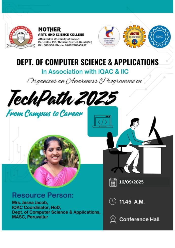 The Department of Computer Science was established in the year 2002. The academic programmes offered are MSc Computer Science,BSc Computer Science and BCA ..The department will provide effective academic advising to promote student learning and development outcomes and achievements of educational goals.The department will provide high quality under graduate education in computer science by enhancing teaching effectiveness,refining curriculum to keep the programme current with the rapidly changing computer technology and providing equipment/facilities(Highly equipped Lab/Smart Room) for students to access and gain practical experience.Department Computer science gives industrial exposure to the students by the way of “Industry Visits” and Internship programme.The computer science department encourage students to reach the modern learning outcomes. All over the world,ex-students of the Department occupy top positions in both academia and industry.